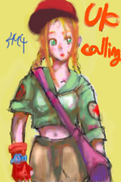 Calling Is this a reference to something? I dunno, but it's a cute picture. Even when she's dressed casually, Cammy's still got the soldier look going. That's OK cuz it's a good look for her! |