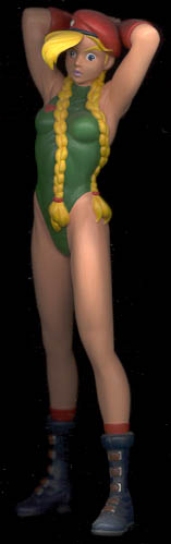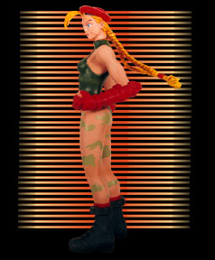 (560x400) This Cammy model is cool, huh?! Anyhow, the basic model for this model is Cammy's SSF2 official portrait from Capcom. However, the modeler changed the position of her left arm. I finally got a copy of this one in July 2001. |