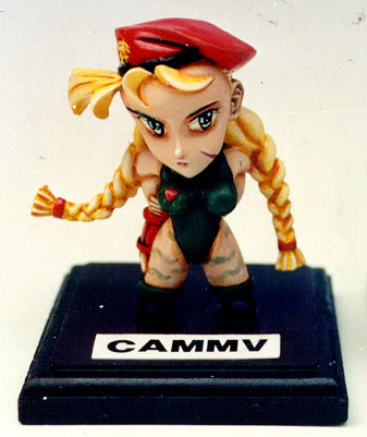 Cammy statue 68k (349x600) This is the 2nd Cammy statue I ever got. It's real big... about 9 inches tall. It's a perfect looking model, but the guy who painted it for me made her hair blue! That's not right. But I used to have blue hair too, so who am I to complain? |