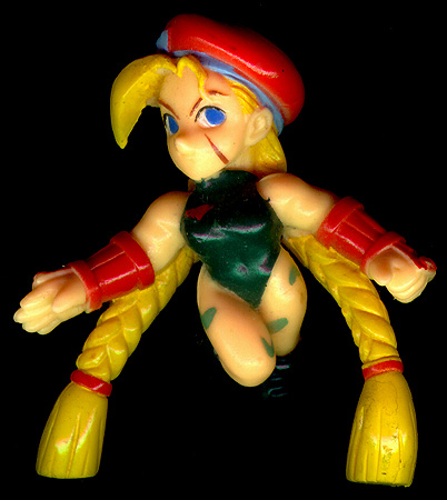 (392x500) It is absolutely amazing that I ever got a hold of this little Cammy rubber figure. Actually, I got an entire set of SSF2 figures like this. These kinds of toys come from little vending machines or packs of candy! BTW, I've also got one just like this, but made out of blue rubber. |